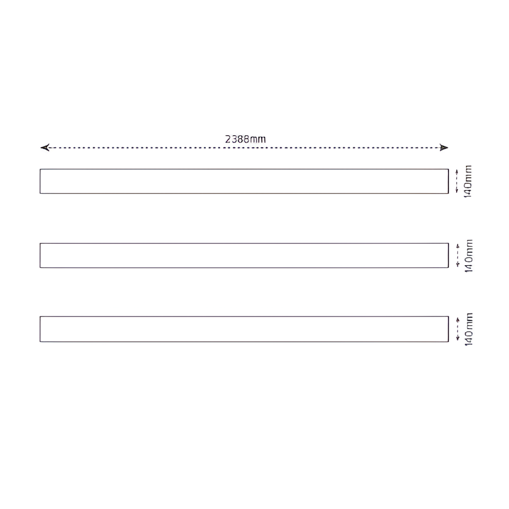 | Horizontal Rails | 2388mm* (w) x 140mm (h) x 38mm (d) - (3 of) - to suit 2450mm Post Centres |