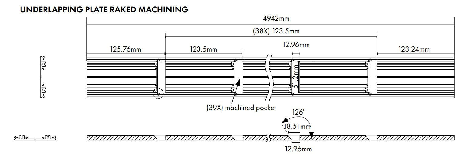 • 39 x pre-slotted ELONGATED holes at 123.5mm centres into which 50x10mm balusters insert