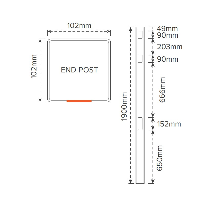| Dimensions | 1900mm (h) x 102mm(w) x 102mm (d) |