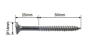 • Self tapping screw - 14G x 75mm long - Diameter 14mm outer head