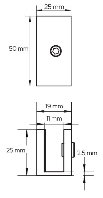 Made of solid brass, this Square No Drill Clamp is for 10 mm Glass This clamp provides an alternative to clamps which require drilled holes or notches in the glass. A single nylon tipped grub screw is tightened to secure onto 10 mm glass.