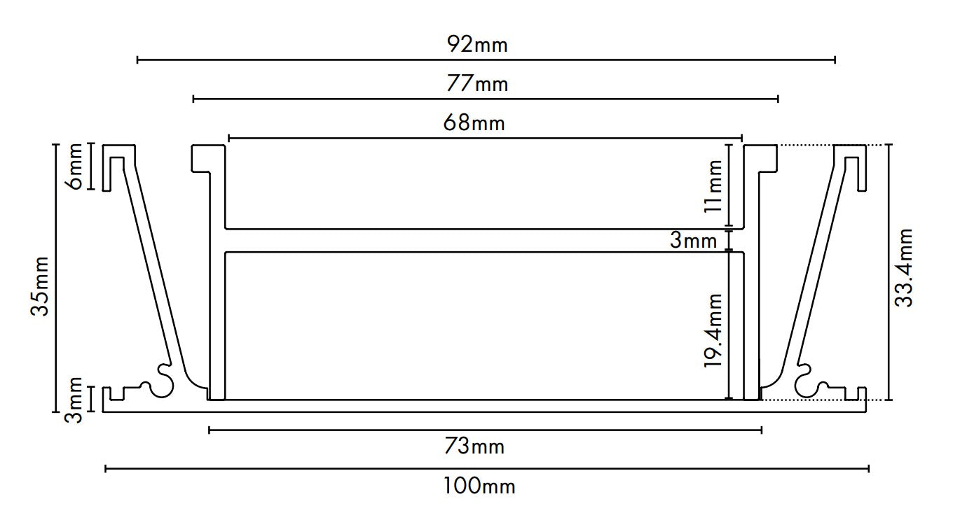1. Tile insert profile, suits 10mm thick tile or thinner.