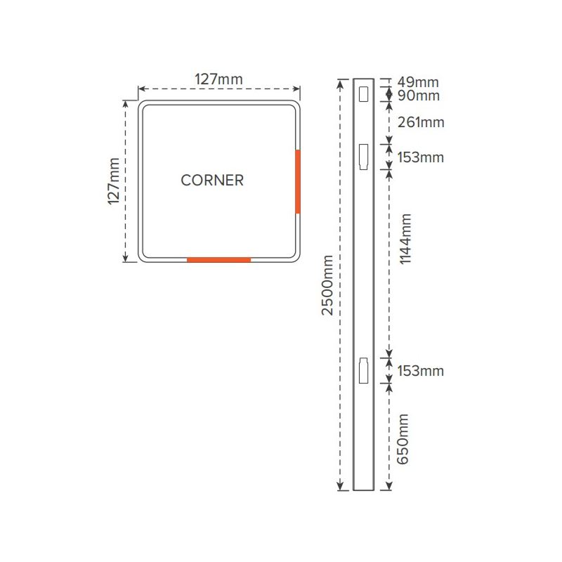 | Dimensions | 2500mm(w) x 127mm (h) x 127mm (d) |
