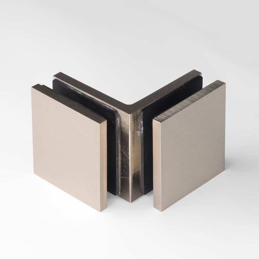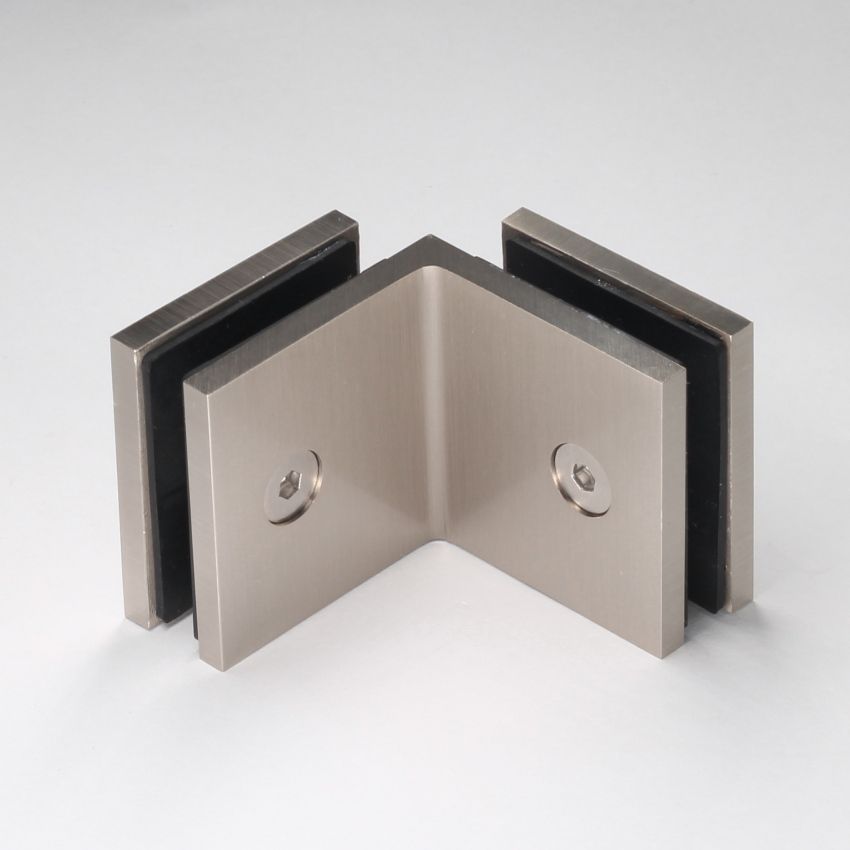 Frameless shower glass BRACKET SQUARE GLASS TO GLASS 90 Degrees - Brushed Nickel