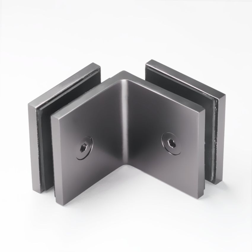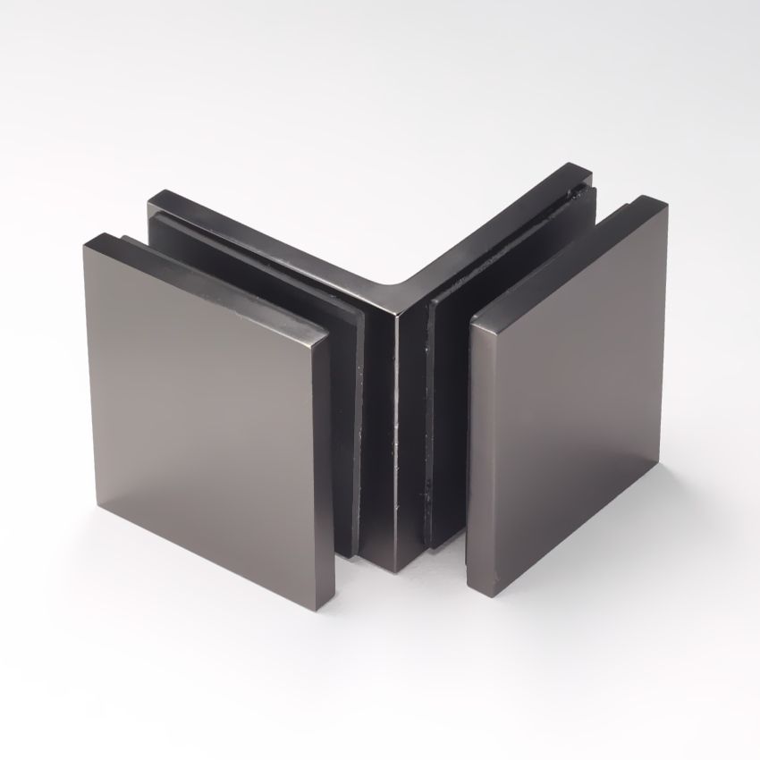 Frameless shower glass BRACKET SQUARE GLASS TO GLASS 90 Degrees - Gunmetal Grey