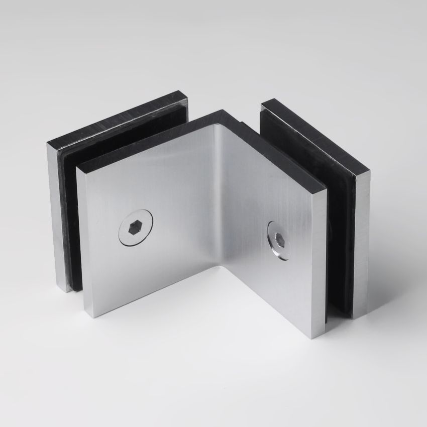 Frameless shower glass BRACKET SQUARE GLASS TO GLASS 90 Degrees - Satin Chrome
