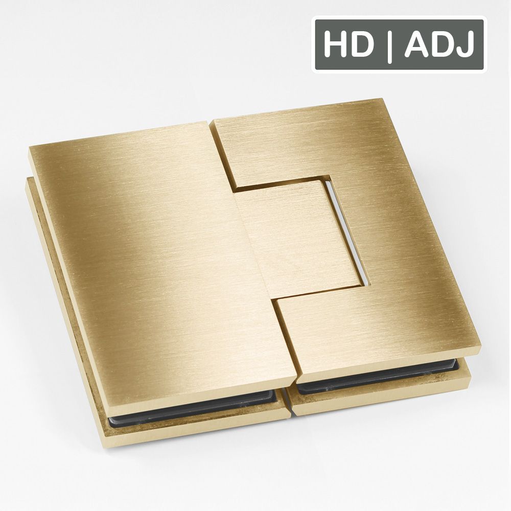 Forge Frameless Shower Hinge Heavy Duty Adjustable Glass to Glass 180 Degrees - Brushed Brass