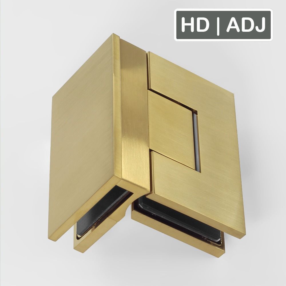 Forge Frameless Shower Hinge Heavy Duty Adjustable Glass to Glass 90 Degrees - Brushed Brass
