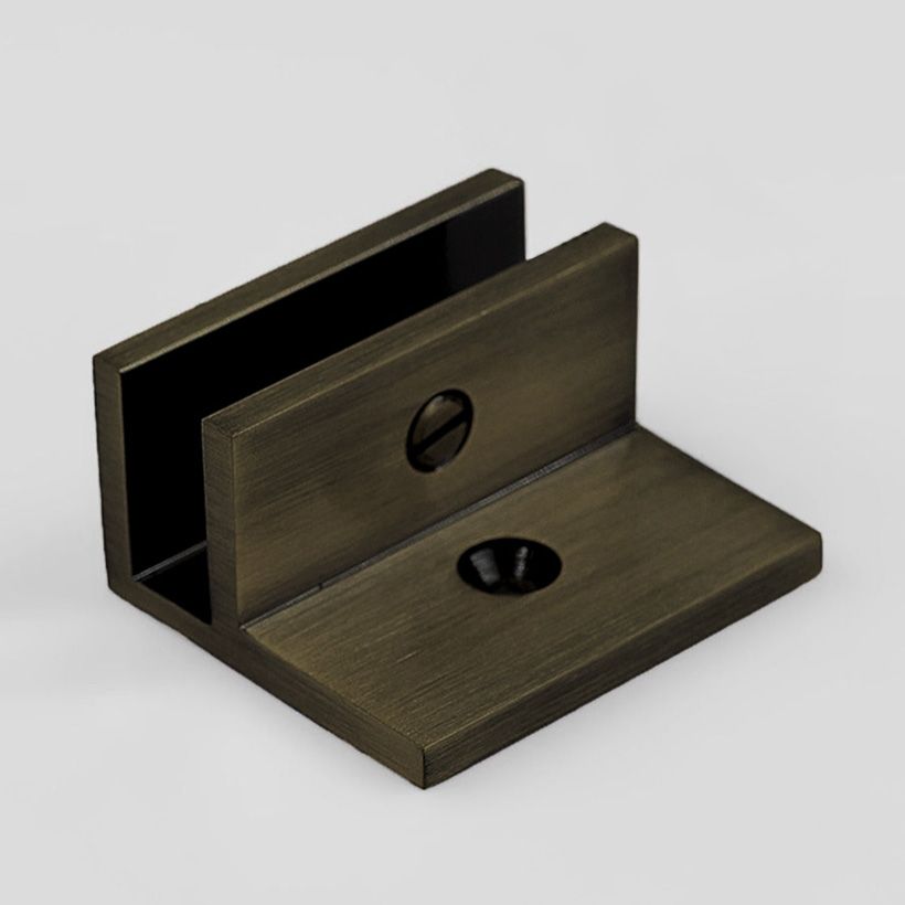 Frameless Shower Screen U Bracket Square with Horizontal Leg - Dark Antique Brass