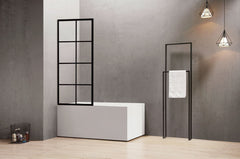 Black Framed Bath Shower Screen Fixed Panel with Grills
