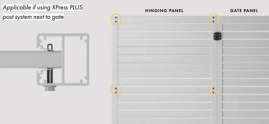 • Must be used to provide rigidity of hinging panel adjacent to gate