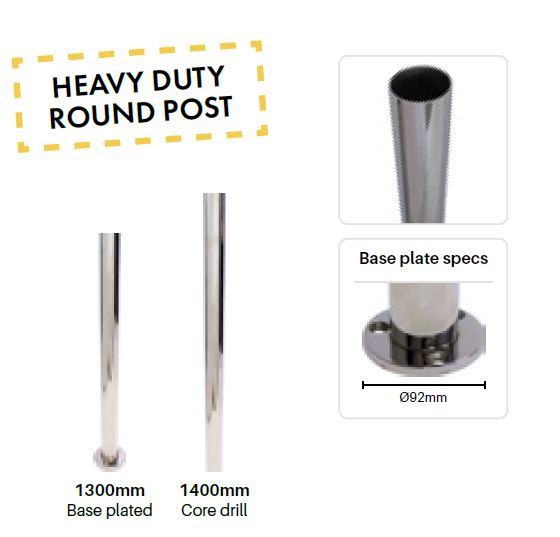 Choose from 1300mm high base plated post with top cap and domical cover