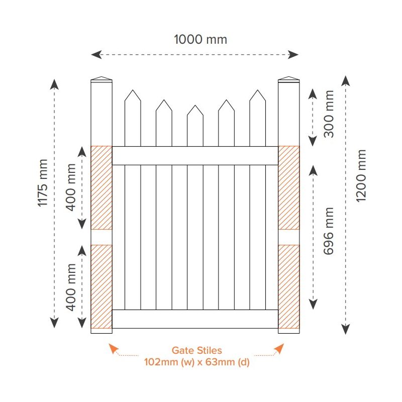 • 1 x Single 1000mm wide Gate - 1000mm(w) x 1200mm(h)