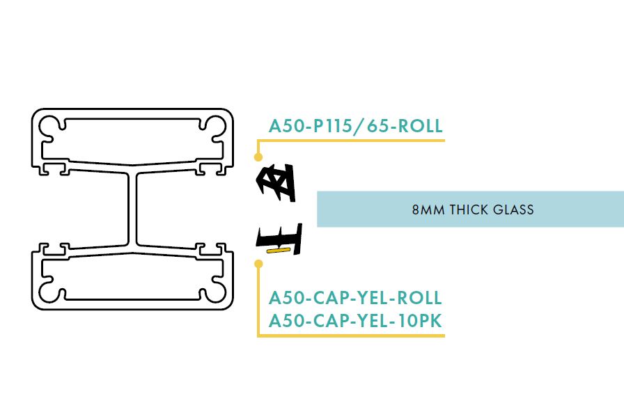 • Rubber glazed into 1 side of post extrusion pocket and/or glazing rail (opposite side to captive wedge rubber)