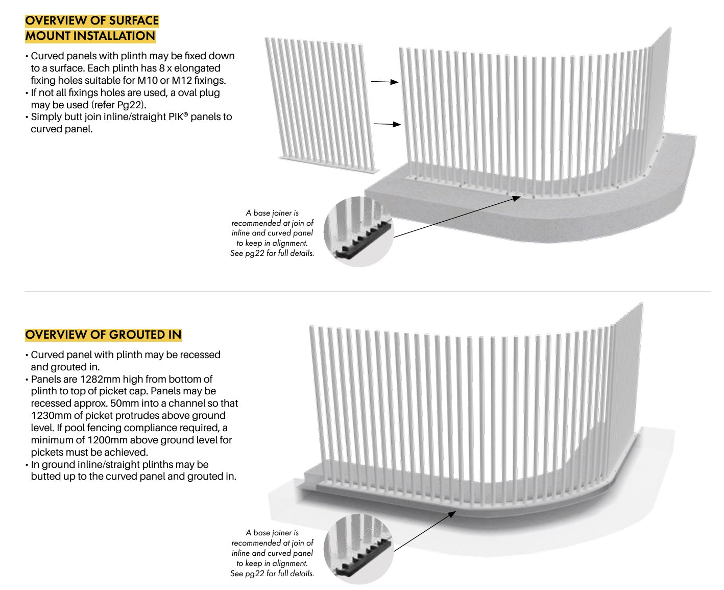 Designed for durability, safety, and effortless integration with our straight PIK panels, this curved section ensures a professional, high-end finish.