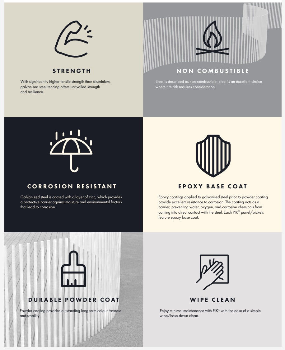 Ultra-Strong Build – 32mm pickets with a 3mm steel wall thickness, precision welded to a heavy-duty plinth.