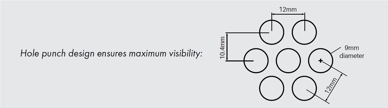 • Excellent visibility through punched panel; great