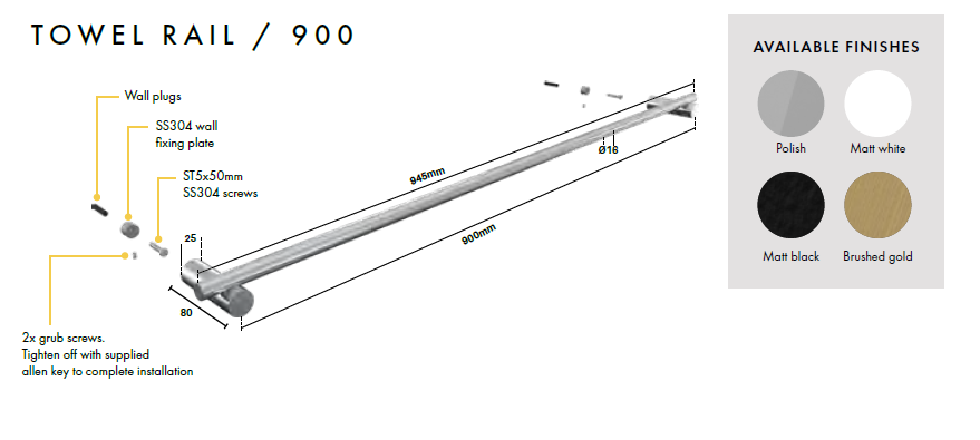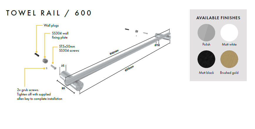 • Includes fixing screws, wall plug & allen key